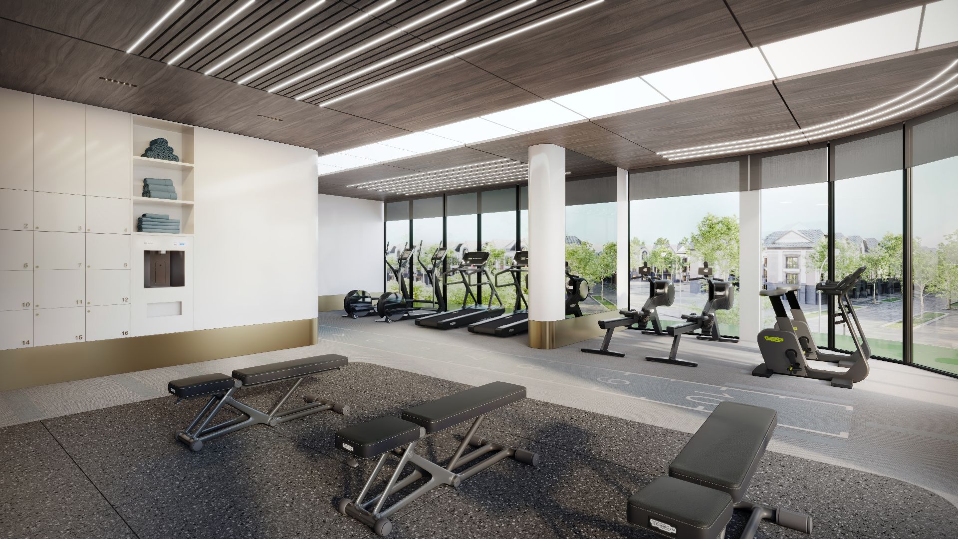 Không gian cảnh quan tại LUMIÈRE SpringBay được tạo nên bởi ngôn ngữ thiết kế cân bằng và sáng tạo, đáp ứng đa dạng phong cách sống từ khoẻ mạnh về thể chất đến lành mạnh về tinh thần với 2 phân khu Active Zone và Wellness Zone.
