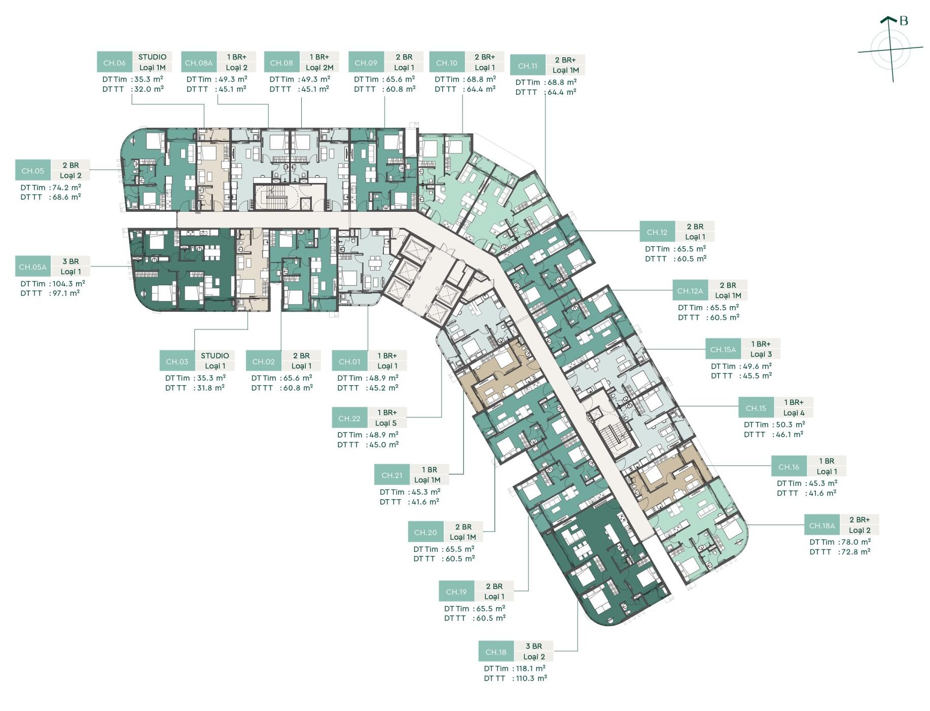 🍃 Sản phẩm: Studio, 1 ngủ, 2 ngủ, 3 ngủ, Penthouse & Duplex.